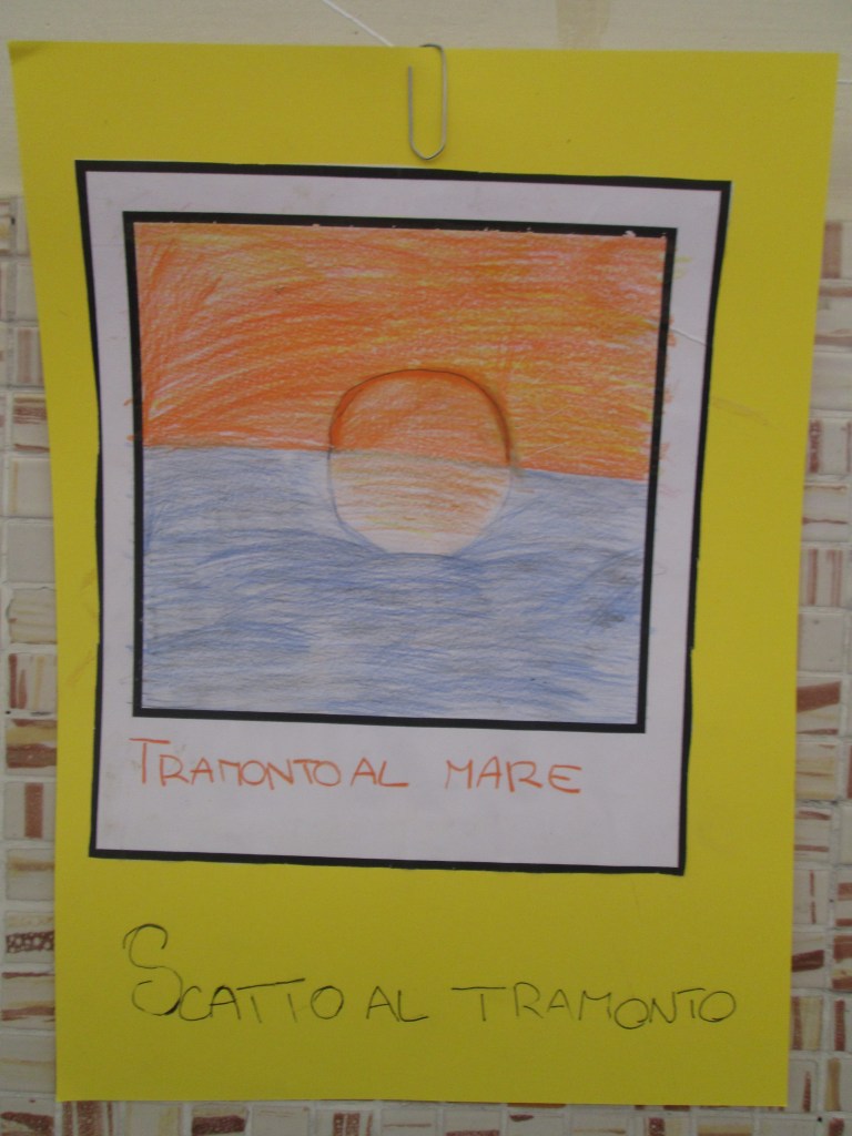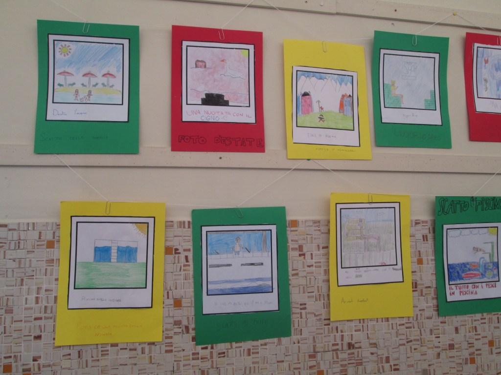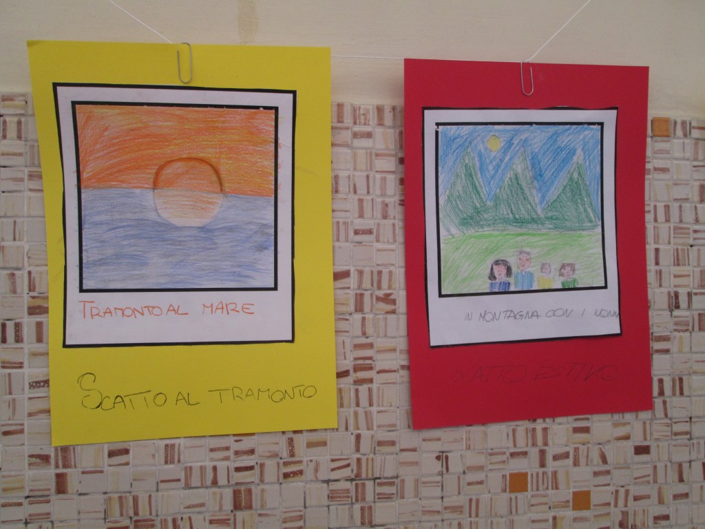 Abbiamo distribuito ad ogni bambino la matrice di una Polaroid all’interno della quale abbiamo chiesto di disegnare un momento speciale dell’estate; ad ogni fotografia abbiamo chiesto di assegnare un titolo nella parte inferiore dello scatto.
