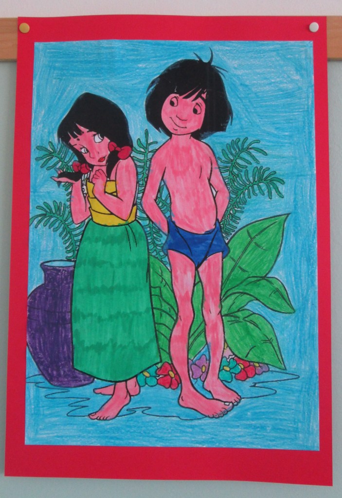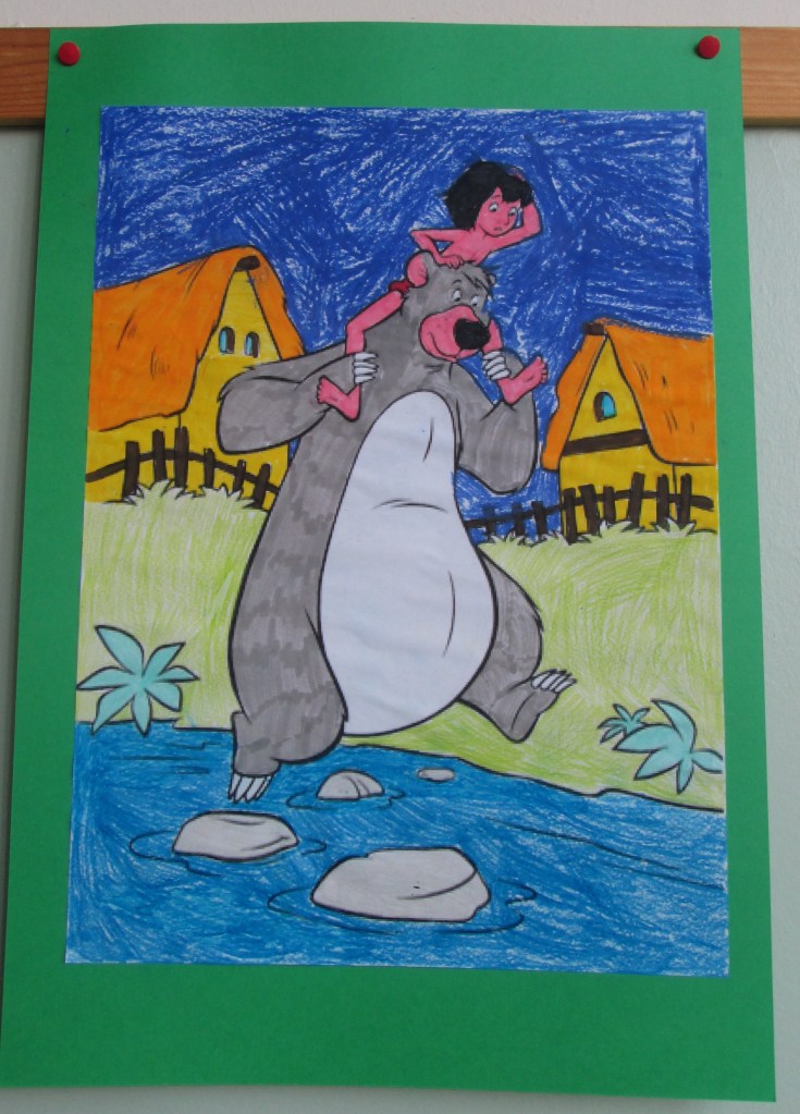 Per la classe terza abbiamo scelto invece di rappresentare immagini del cartone “Il libro della giungla”, in accordo con il libro utilizzato per l’attività di storytelling (visita anche l’apposita sezione dei progetti spaziali per saperne di più!). Del classico di Kipling amiamo in modo particolare il senso dell’avventura, il mistero affascinante del mondo incantato della giungla, il percorso di formazione che condurrà Mowgli ad affrontare molte prove insidiose fino alla maturazione di una nuova e più profonda consapevolezza.