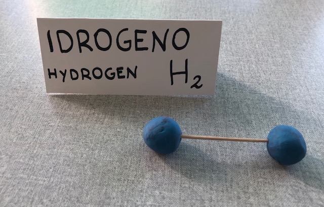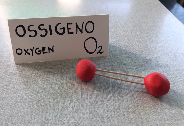 Dopo aver mostrato ai bambini la nostra presentazione Power Point, chiediamo loro di riprodurre con bastoncini e pasta modellabile alcune tra le molecole più comuni…ecco ossigeno, idrogeno, carbonio, acqua, anidride carbonica e metano prendere vita sotto i nostri occhi.