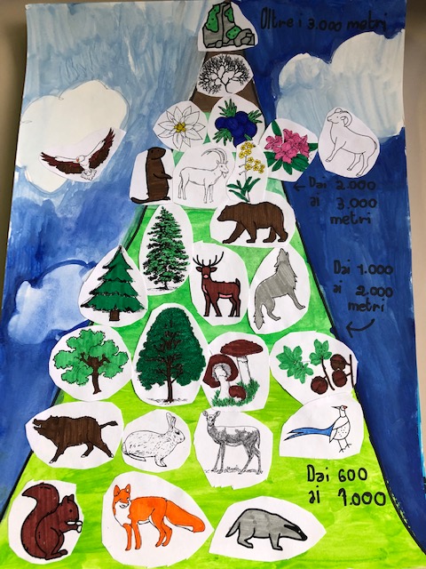 Successivamente abbiamo mostrato una presentazione sulla flora e la fauna della montagna e abbiamo realizzato un simpatico lavoro con gli acquerelli per visualizzare a colpo d’occhio la flora e la fauna della montagna, ben differenziate in base all’altitudine.