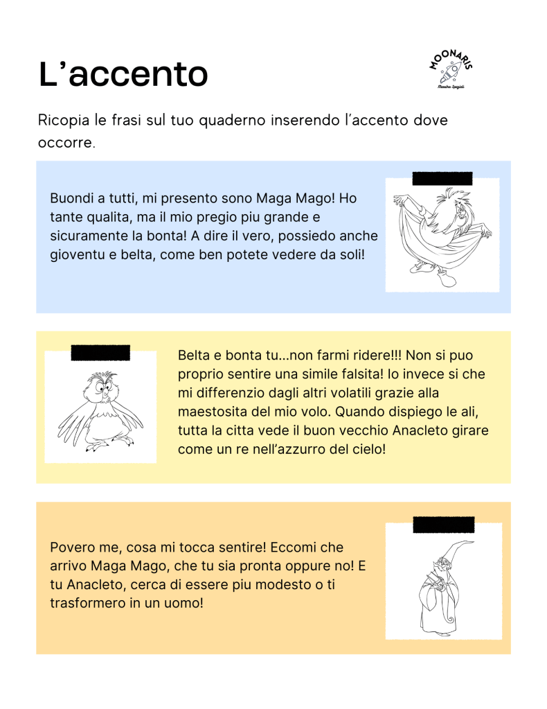 Aiutiamo i personaggi a mettere gli accenti al posto giusto con questa simpatica scheda a tema “Spada nella roccia”! 🧙♂️🧙♀️🦉