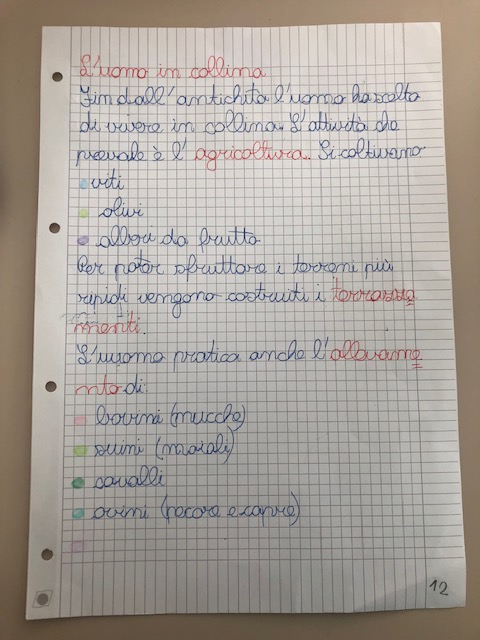 Oggi con la classe terza abbiamo osservato insieme le caratteristiche della collina. In modo particolare abbiamo analizzato insieme i concetti di terrazzamento, calanco e pendio, abbiamo studiato la flora e la fauna della collina e abbiamo approfondito le attività dell’uomo in questo paesaggio.