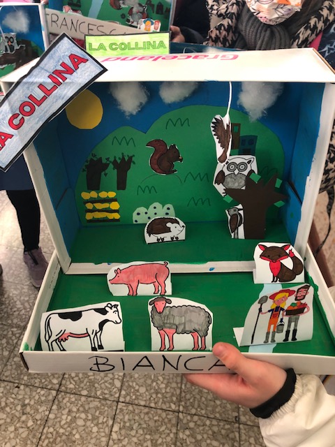 A conclusione dell’attività abbiamo chiesto ai bambini di realizzare un compito autentico ricostruendo in una scatola da scarpe l’ambientazione della collina.🏞️ Abbiamo fornito agli studenti diversi materiali: cartoncini colorati, gomma crepla, ghiaia, sabbia e pannolenci per realizzare il paesaggio servendosi delle più diverse tecniche artistiche. Inoltre abbiamo preparato delle schede raffiguranti animali e piante tipiche della collina da poter posizionare a piacere nel proprio ambiente. Vi piace il risultato? 🤩