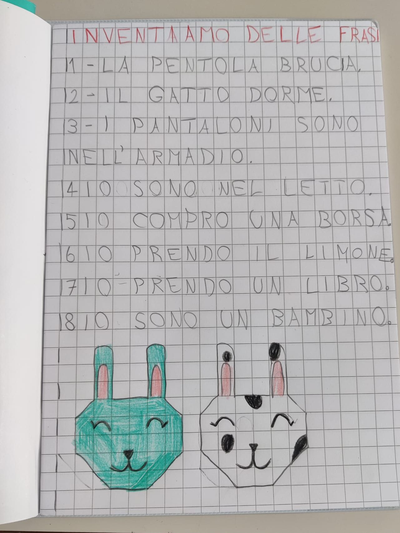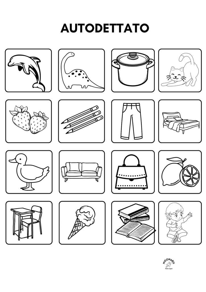 ✏️ Abbiamo chiesto ai bambini di scrivere i nomi degli oggetti raffigurati nelle tesserine e, in un secondo momento, abbiamo chiesto loro di formare in modo autonomo delle frasi di senso compiuto con quelle paroline.