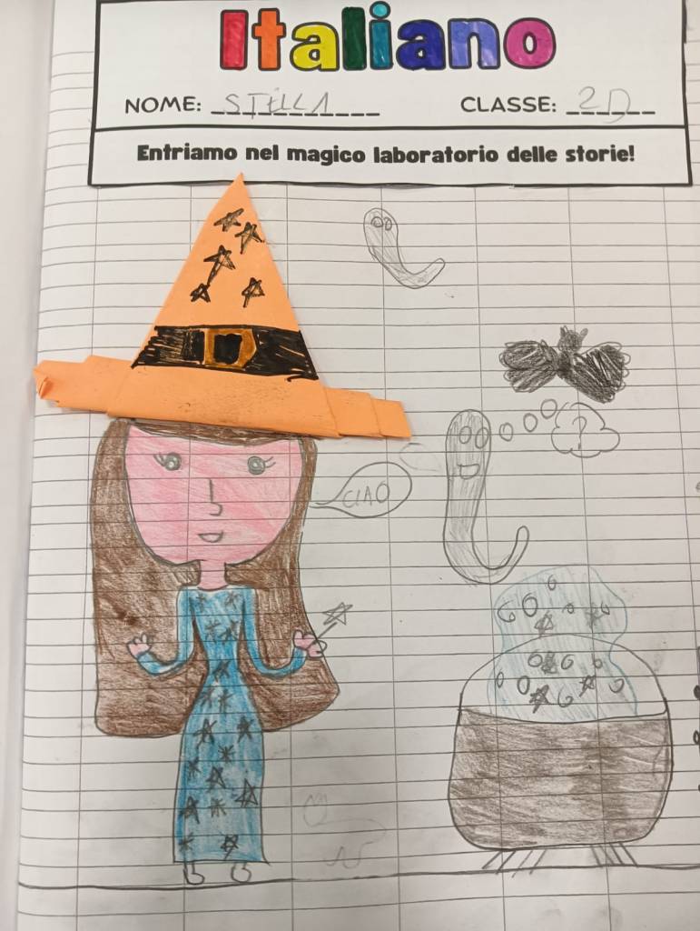 📖 In italiano, ci siamo ispirate ad una streghetta per entrare nel magico mondo delle storie. Abbiamo fatto creare ai bambini l’origami del cappello e poi ognuno ha disegnato la sua strega. 🧙🏻♀️