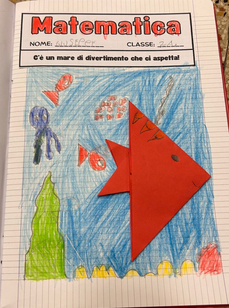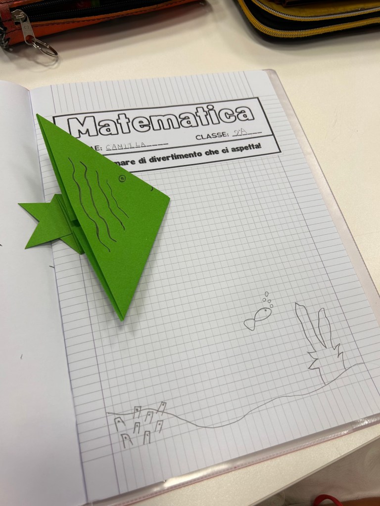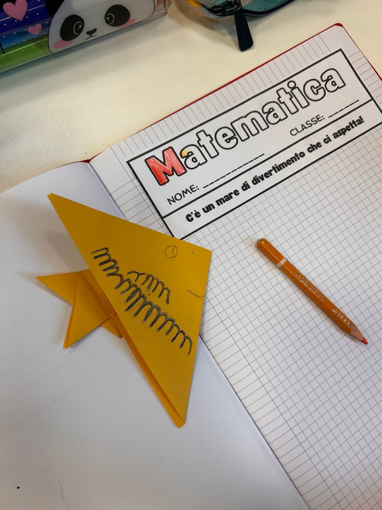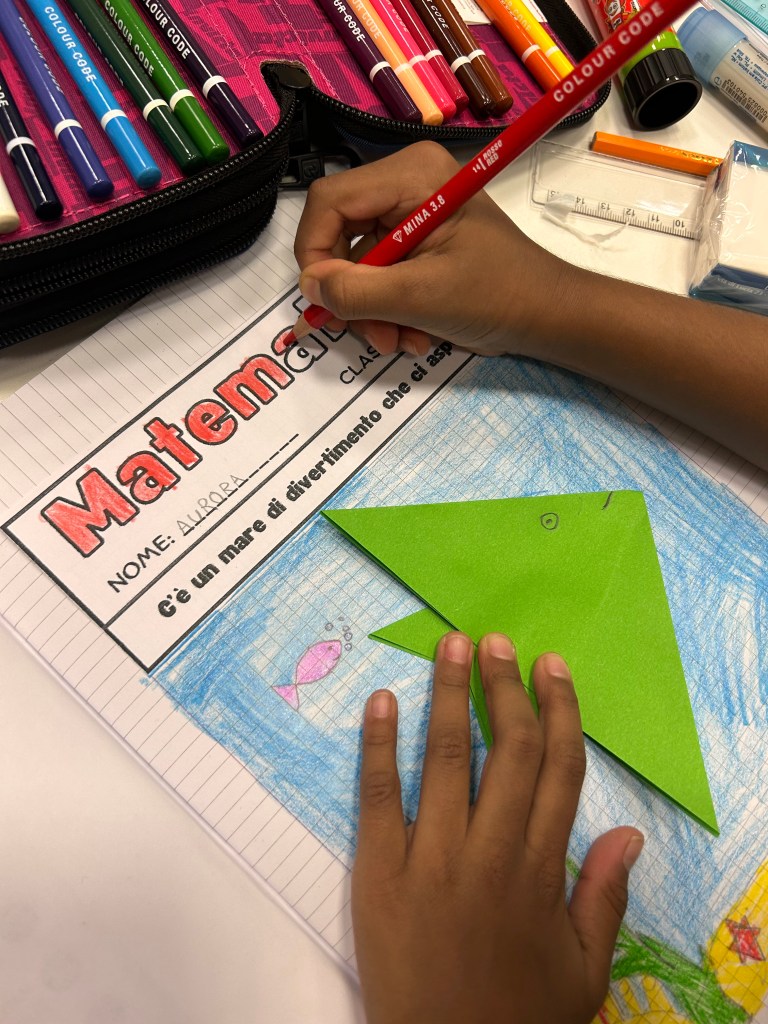 ➕ Per matematica, siamo partite dalla lettura dell’albo “Arcobaleno”, abbiamo creato l’origami del pesce per tuffarci in un mare di divertimento. 🐠