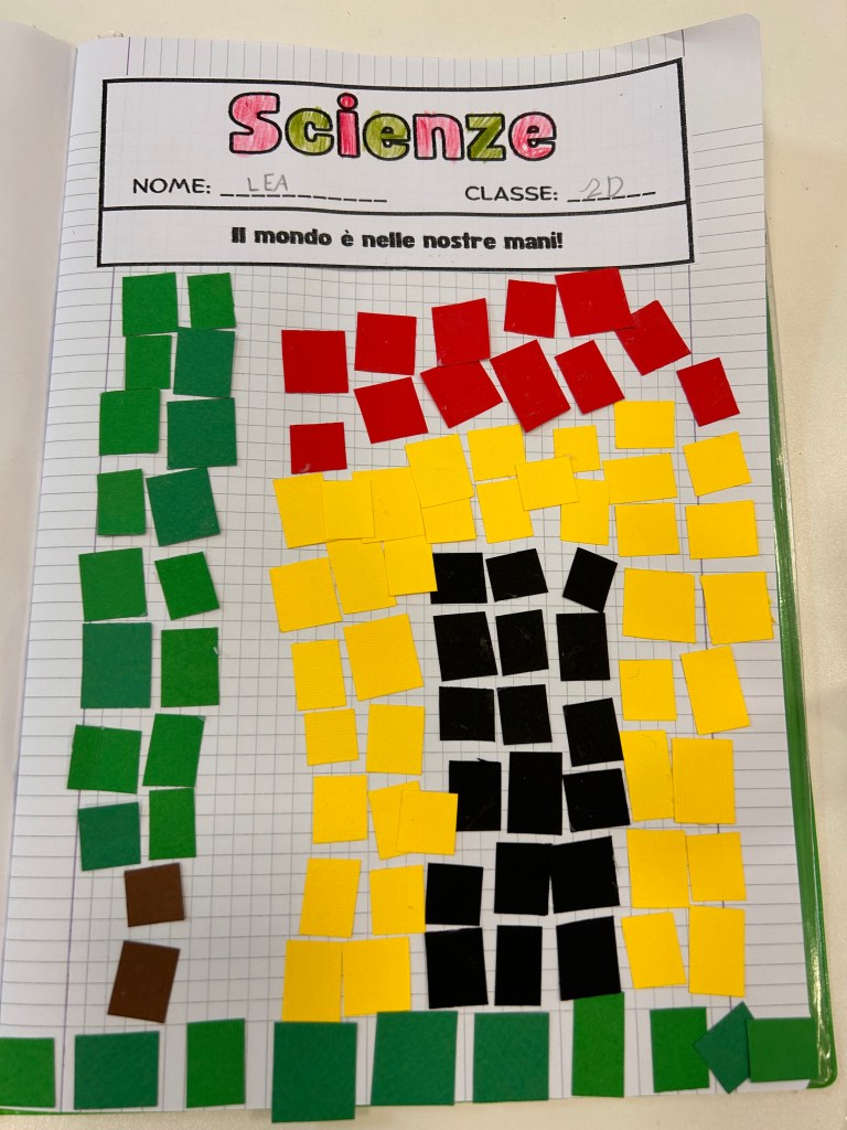 🪷 In scienze, abbiamo proposto due copertine. Per la prima abbiamo ripreso il tema dell’anno e hanno costruito il pianeta terra; per la seconda invece ogni bambino ha creato un paesaggio utilizzando la tecnica del mosaico. 🌿