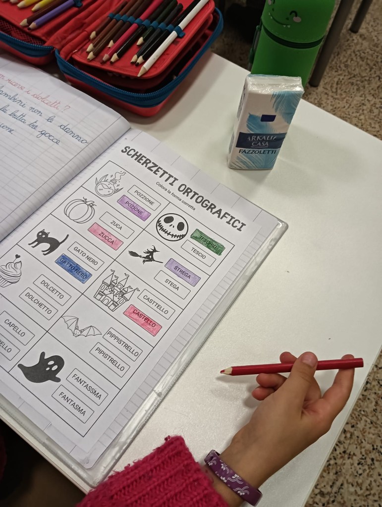 In classe seconda, abbiamo preparato due attività per consolidare le nostre abilità ortografiche e linguistiche. 👻✍️