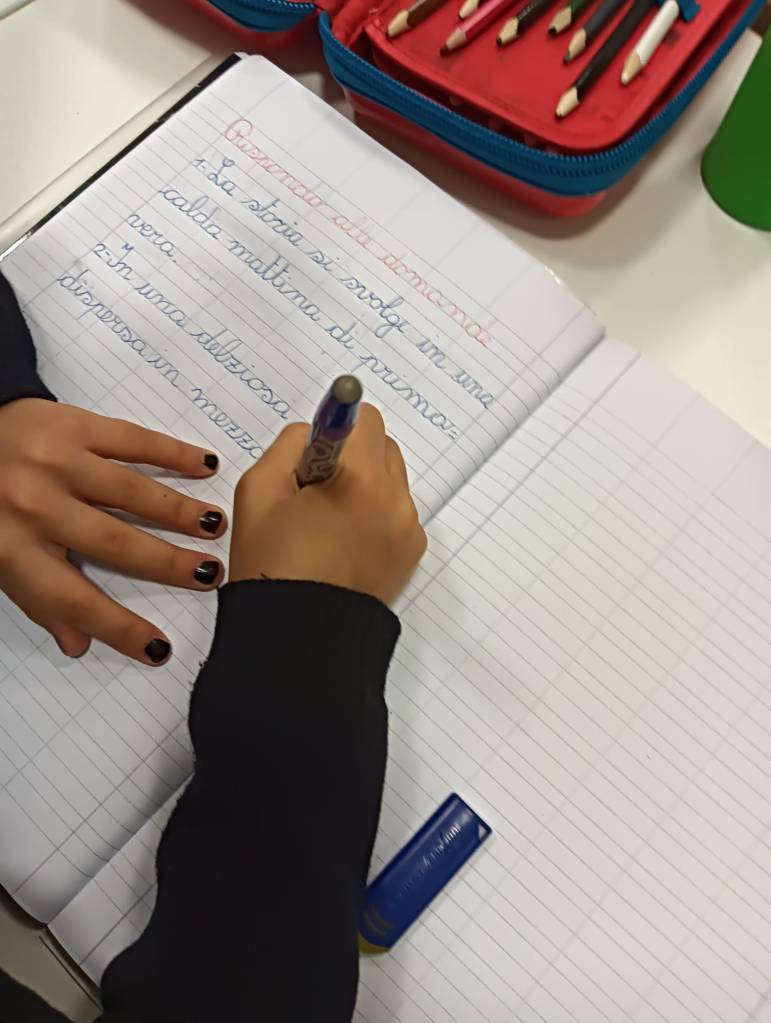 Dopo aver letto la storia, è il momento di mettere alla prova la comprensione del testo dei bambini. I bambini hanno risposto sul quaderno alle domande proposte. 📝