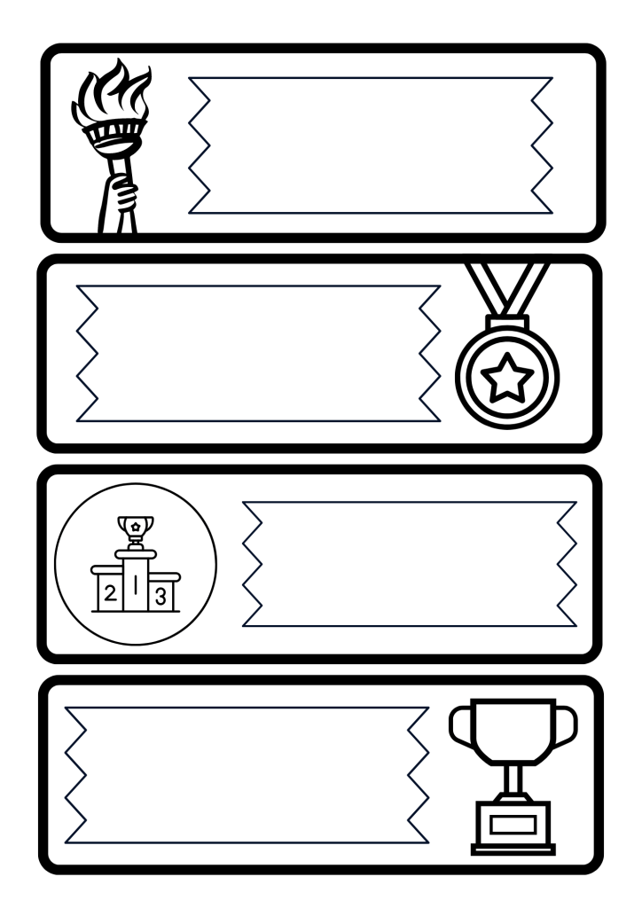 🏅 Non è una vera sfida senza le medaglie! Gli alunni potranno decorarle per ogni singola sfida o per la premiazione alla fine di tutte le sfide. Possono poi essere plastificate e con un cordino indossate dai vincitori 💪