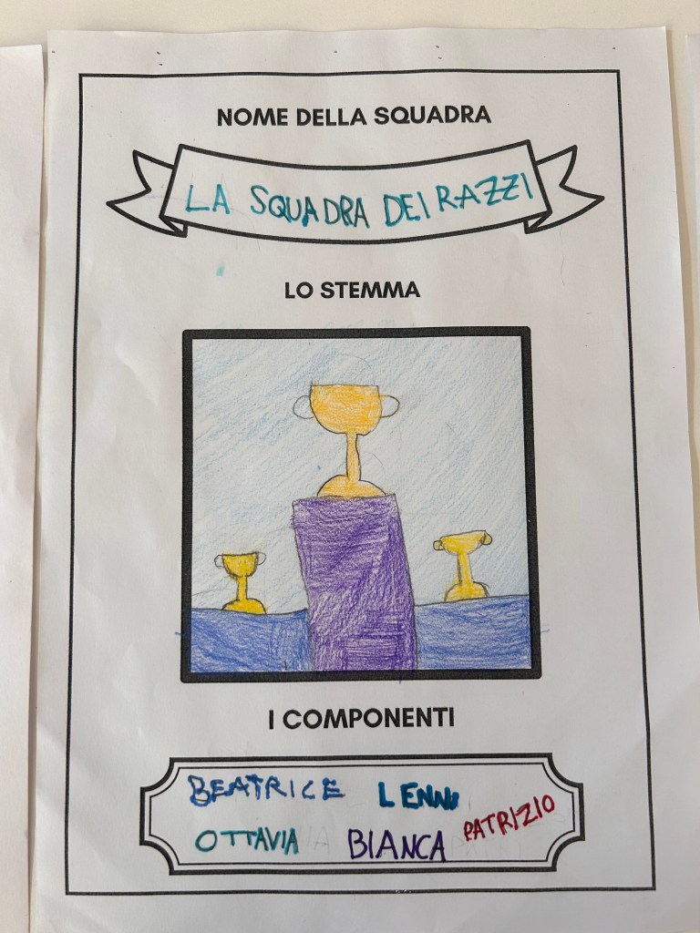 Al termine del gioco, l’insegnante assegnerà sul tabellone generale 4 punti alla prima squadra, 3 alla seconda, 2 alla terza e 1 all’ultima.