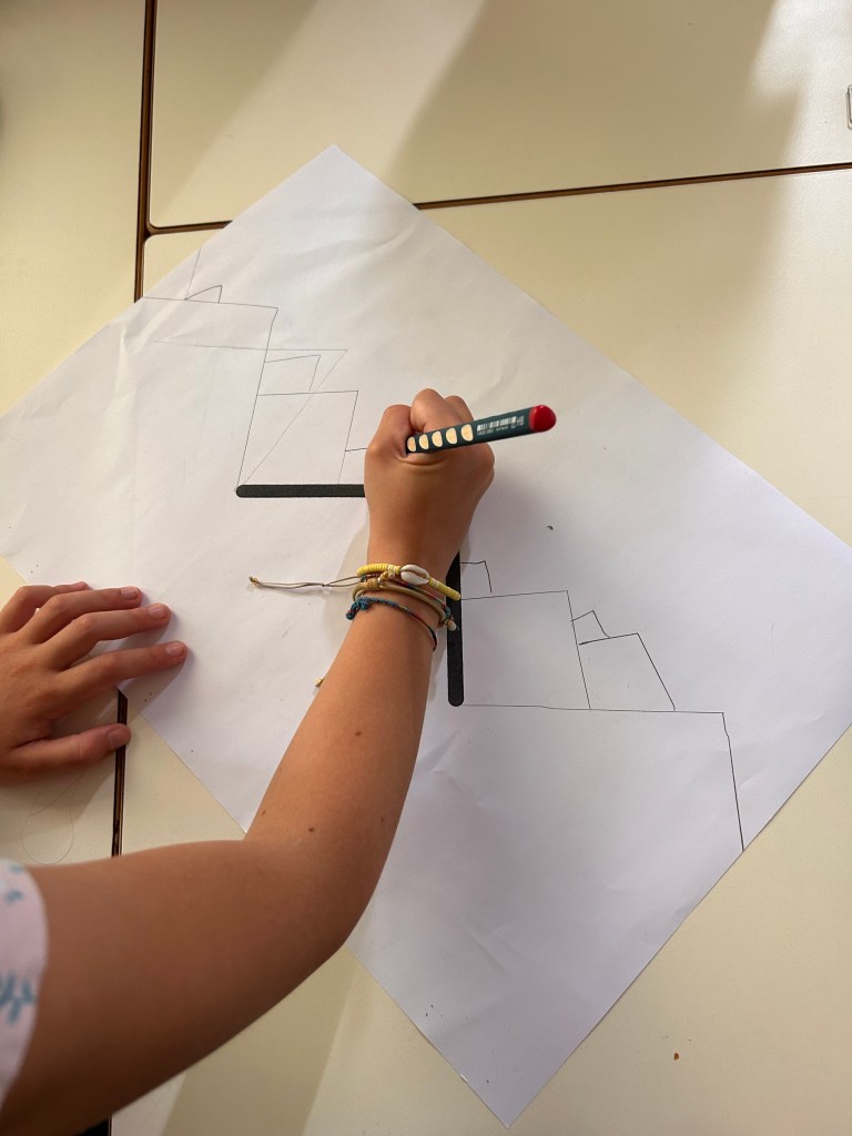 Testiamo anche lo spirito di collaborazione 👩👩👧👧 e la capacità di divisione del lavoro dei bambini con questo gioco sfidante; chiediamo di tagliare le piramidi e osserviamo il loro modo di organizzarsi e dividersi i compiti.