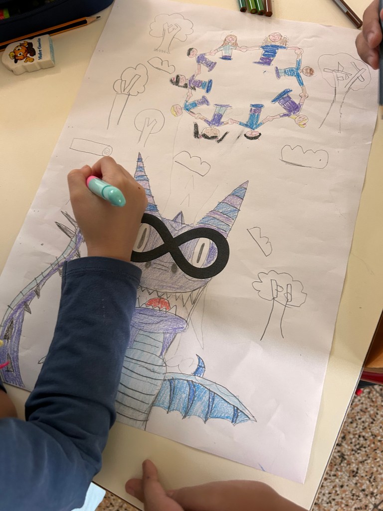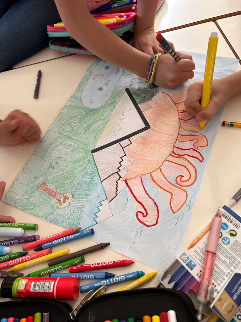 La tecnica può essere liberamente scelta dalla squadra: matite, pennarelli, acquerelli, pastelli a cera, collage…chi più ne ha più ne metta! 🖍️🖌️