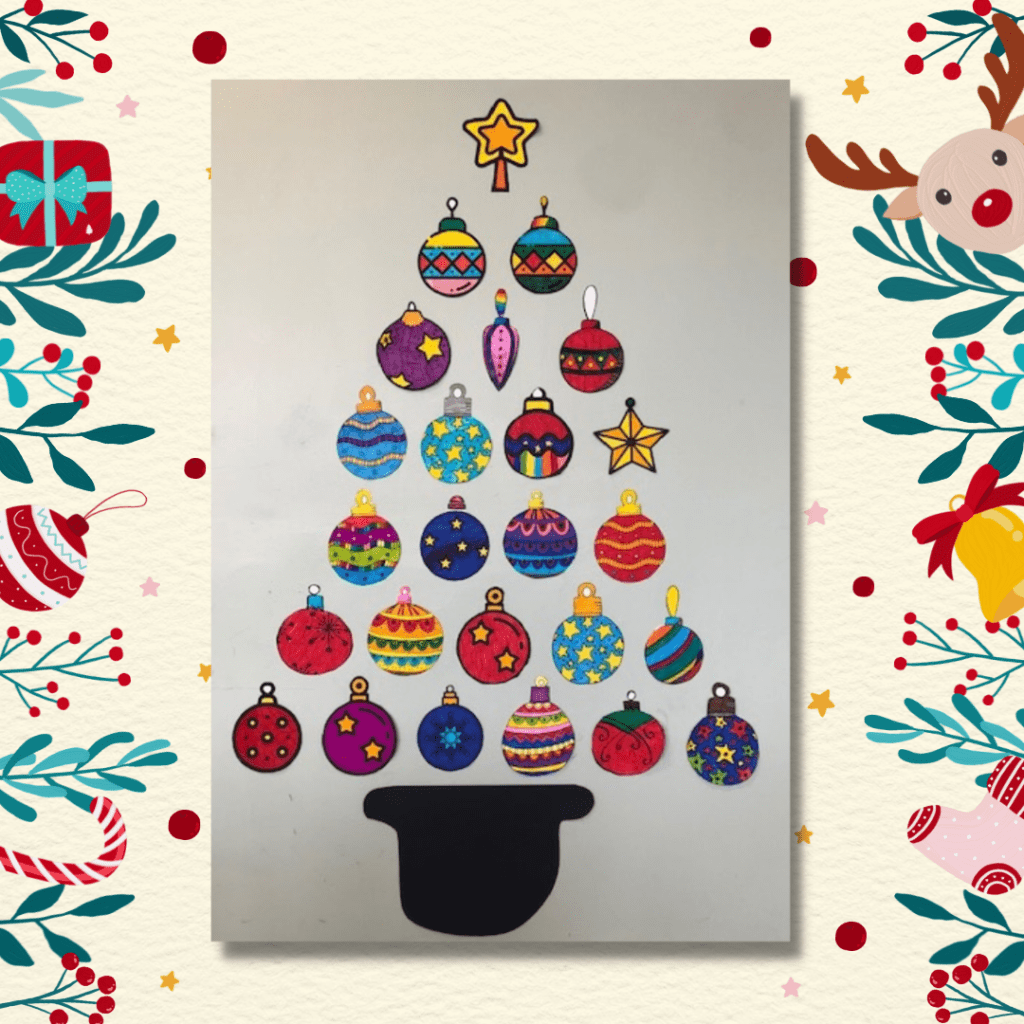 Ecco i materiali per creare gli addobbi per la classe. Abbiamo pensato di far colorare ai bambini le palline e poi assemblarle insieme per costruire l’albero di Natale. 🎄🎄