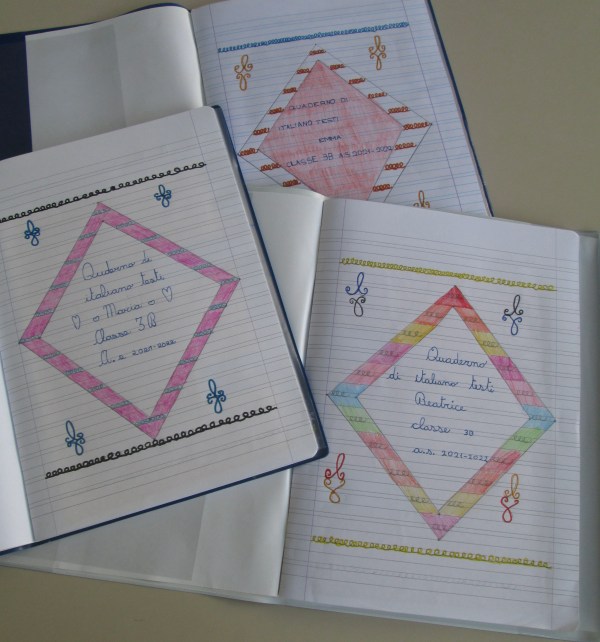 Anche per italiano abbiamo pensato quest’anno di far realizzare direttamente ai bambini la copertina del quaderno...pensiamo infatti sia bellissimo che si mettano alla prova ed esercitino la propria abilità e precisione anche sulle righe e non solo sui quadretti. Siamo molto soddisfatte del risultato, semplice ma di effetto. Cosa ne pensate?
